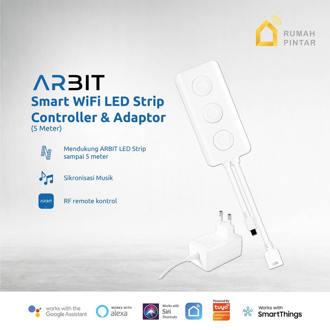 Bagikan produk ini :ARBIT - Smart WiFi LED Strip Adaptor Controller merupakan Adaptor + Controller untuk ARBIT LED Strip sampai dengan 5 meter.